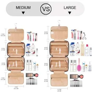 COOSKY Travel Hanging Toiletry Bag for Women, Holds Full-Size Shampoo, with Jewelry Organizer Compartment, Extra Large Makeup Bag, Waterproof Cosmetic Bag, Toiletries Kit Set with Trolley Belt, Black