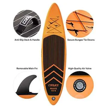 Cooyes Inflatable 10.6’x32’'x6’' (19.4 lbs) Stand Up Paddle Board with SUP Accessories & Backpack, Removable Fin, Ankle Leash, Adjustable Paddle, Hand Pump, Waterproof Phone Case, ISUP for Beginners