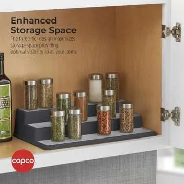 Copco Non-Skid 3-Tier Spice Pantry Kitchen Cabinet Organizer, 15-Inch, Charcoal