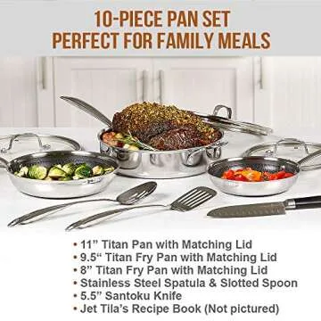 Copper Chef Titan Pan, Try Ply Stainless Steel Non-Stick Frying Pans, 10-Piece Cookware Set with Recipe Book