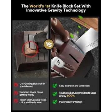 CoquusAid Knife Set, New 15° Beveled Easy Insert, 15 Pcs Kitchen Knife Block Set with Block and Sharpener, German Vacuum Oil Cooled Crafted, Countertop-Free Steak Knife Set, Stainless Steel Brown