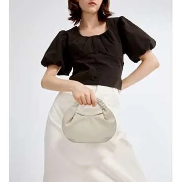 CORAID Mini Hobo Tote Bags for Women Soft Leather Clutch Purses for Women Cloud-Shaped Top Handle Bags Beige