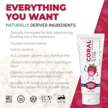 Coral White Kids Bubble Berry Fluoride Free Toothpaste - 4 Ounces (1 Pack)