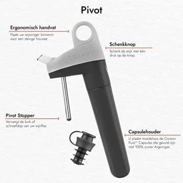 Coravin Pivot Wine Preservation System - Preserve Wine for 4 Weeks - Includes the Pivot System, 1 Capsule, 2 Wine Bottle Stoppers & 1 Bottle Sleeve - By-the-Glass Wine Saver System - Grey