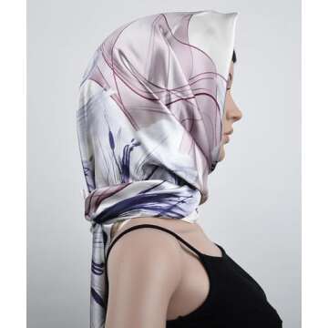 corciova 35 Large Satin Tie Square Tie Silk Like Hair Scarf Wrap Headscarf for Sleeping Purple Heart Piggy Pig Flower Bandana