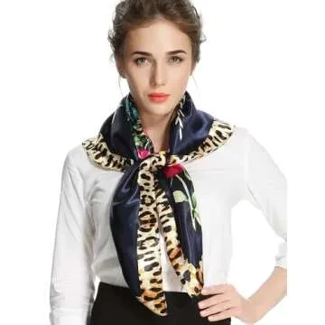 Show more Step into the glamorous world of fashion with the Corciova Large Square Satin Silk-Like Lightweight Scarf, a must-have accessory for any stylish woman. Crafted from high-quality polyester satin, this scarf boasts a luxuriously soft texture and a stunning silk-like finish that adds a touch of elegance to any outfit. With vibrant colors and chic designs, including eye-catching leopard prints and delicate floral patterns, this scarf is not just an accessory—it's a statement piece. Measuring a generous 35 x 35 inches, it's designed to provide versatility and practicality, making it perfect for various styling options. Whether you're wrapping your hair at night, adorning your head as a stylish headband, or adding flair to your handbag, this scarf offers endless possibilities for creativity.
