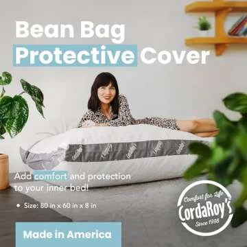 CordaRoy's Waterproof Bean Bag Protector - Removable Cover for Convertible Bean Bag Chair & Bed - Machine Washable & Dryer Safe - Fitted Bean Bag Protector - Queen Size