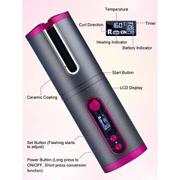 Cordless Automatic Hair Curler, WanderLand Cordless Hair Curler, Auto Curling Iron with LCD Temperature Display and Timer, USB Rechargeable Travel Curling Iron (Upgraded) (Gray)