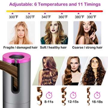 Cordless Hair Curler, Automatic Curling Iron with 6 Adjustable Temperature, Auto Rotating Ceramic Barrel Hair Curler Fast Heating, Portable USB Rechargeable Beach Waves Curling Iron Wand