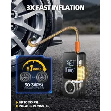 Introducing the Cordless Tire Inflator Portable Air Compressor, an indispensable gadget for anyone who values convenience and efficiency on the go. Designed with a sleek and compact structure, this air pump not only comes with a durable storage case to neatly organize all your accessories but also boasts a powerful 150 PSI capabilities that inflate tires 3X faster than standard pumps. Whether you're at home or out on the road, this smart air pump is your...