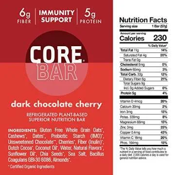 CORE Organic Refrigerated Plant-Based Protein Bars – Low Sugar, High Fiber Bars with Probiotics – Pack of 16, Dark Chocolate Cherry + Coconut Chocolate Chip