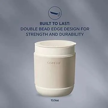 Corelle Stoneware 4-Pc Tumbler Set of 2 with Lids, Handcrafted Artisanal Travel Mug, Solid Glaze Stoneware, 13-1/2-Oz Travel Coffee Mug Set, Oatmeal