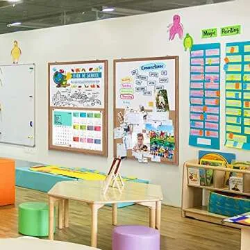 Cork Board White Board Combo, Wooden Frame 36 x 24 inches Hanging White Board and Cork Board Combination for Wall Magnetic Whiteboard & Bulletin Board Wall Mounted for Home, Office & Classroom