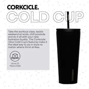 Corkcicle Cold Cup Insulated Tumbler with Lid and Straw, Matte Black, 24 oz – Reusable Water Bottle Keeps Beverages Cold for 12hrs, Hot 5hrs – Cupholder Friendly Tumbler, Lid for Flexible Sipping