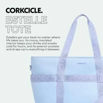 Corkcicle Estelle Tote Cooler Bag, Periwinkle, 14” x 21” – Keep Cool with Portable Tote Bag – Tote Essentials, Carry Picnic Blanket, Yoga Mat, & More