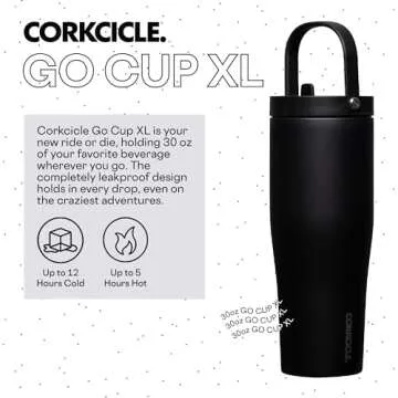 Corkcicle Go Cup XL Insulated Tumbler with Lid and Straw, Matte Black, 30 oz – Reusable Water Bottle Keeps Beverages Cold for 12hrs – Cupholder Friendly Tumbler, Leak-Proof Design