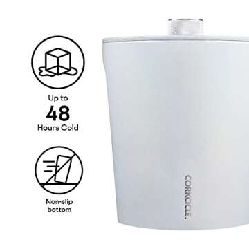 What sets the Corkcicle Ice Bucket apart is its extraordinary temperature retention capabilities, maintaining the chill for up to 48 hours. This means less running back to the freezer or worrying about warm drinks when hosting an outdoor BBQ or an elegant soirée. Equipped with a secure lid, the bucket prevents spills and keeps your ice fresh, ensuring your guests enjoy their beverages at the ideal temperature.