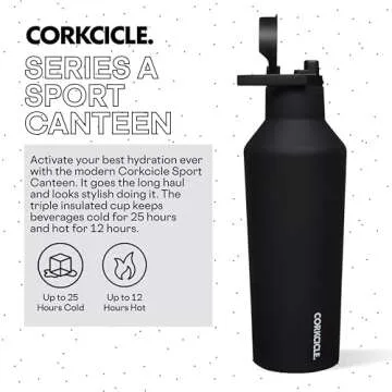Corkcicle Sport Canteen Insulated Tumbler, Black, 32 oz – Reusable Water Bottle Keeps Beverages Cold for 25 Hours & Hot 12 Hours – Cupholder Friendly Tumbler with Screw-On Cap