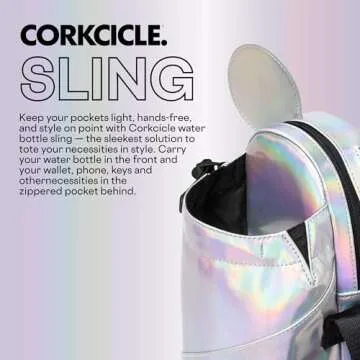 Show more Introducing the ultimate accessory for any stylish adventurer! The Corkcicle x Disney Minnie Mickey Mouse Ears Water Bottle Holder is not just a crossbody sling; it's a blend of functionality and fun. This chic holder is designed to keep your essentials close and your hands free, making it the perfect companion whether you're hitting the gym, going for a hike, or exploring a magical kingdom. The sleek design showcases a playful Minnie Mickey Mouse Ears print, adding a dash of Disney charm to your everyday outings.