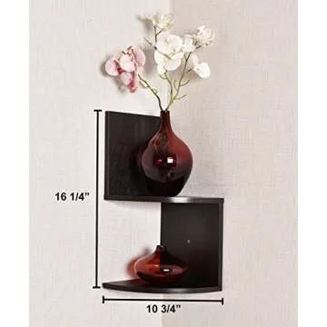 Corner Shelf, Greenco Modern Design 2 Tier Floating Shelves for Walls, Easy-to-Assemble Corner Shelf Wall Mount for Bedrooms and Living Rooms, Espresso Finish