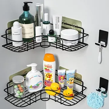 Show more Transform Your Shower Space with our Corner Shower Caddy, an ingenious solution that combines functionality with style. This set comes with two stunning black stainless steel racks designed to help you keep your shower organized and clutter-free. Perfectly suited for busy households, our caddies can hold up to 15 pounds, making them a reliable choice for all your shower essentials, from shampoo and conditioner to bath toys. The no-drill installation means that you can set them up quickly and easily without any wall damage!