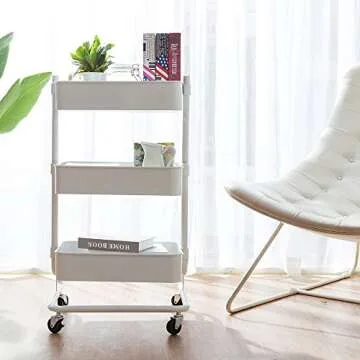 CORNERIA 3-Tier Metal Utility Service Cart Rolling Storage Utility Cart - Adjustable Metal Mesh Rolling Storage Cart - White
