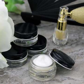 Each jar is made from high-quality clear glass, enhancing both visibility and aesthetics. The included black metal foam-lined lids provide not only a secure closure but also an elegant finish that adds flair to your products. Perfect for crafting homemade lip balms, scrubs, lotions, or storing small amounts of various items, these jars are incredibly versatile. Users consistently appreciate their sleek design and clean appearance, which elevate every product they encase.