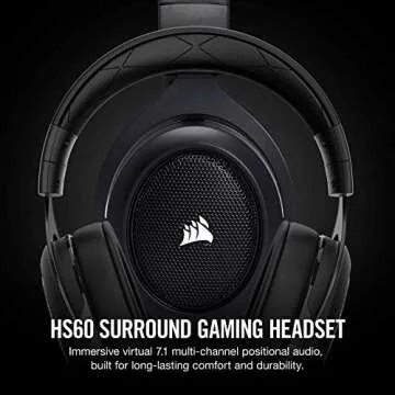 Show more Introducing the Corsair HS60 Surround Gaming Headset, a masterpiece in audio engineering designed for gamers and audio enthusiasts alike. This headset features robust legendary Corsair build quality and durable metal construction, ensuring long-lasting performance that can withstand the rigors of intense gameplay. The plush memory foam and adjustable earcups deliver exceptional comfort, allowing you to immerse yourself in your gaming world for hours on end without experiencing fatigue.