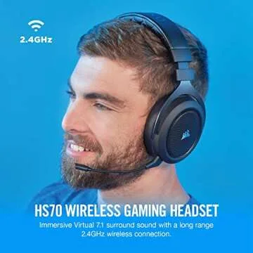 CORSAIR HS70 Wireless Gaming Headset - 7.1 Surround Sound Headphones for PC - Discord Certified - 50mm Drivers – Carbon