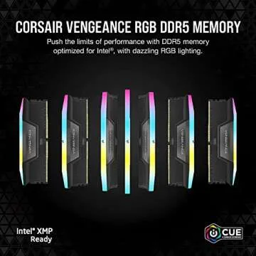 Show more Transform your gaming experience and unleash unprecedented performance with the CORSAIR VENGEANCE RGB DDR5 RAM. Designed meticulously for high-performance desktops, this memory module enables overclocking capabilities, breaking through the conventional limits. With a staggering capacity of 32GB (2x16GB) and a speed of 5600MHz, it’s specifically engineered for gamers and professionals alike who demand nothing less than excellence from their systems. The sleek black design complements any setup, while the dynamic lighting adds a pop of color to your rig, making it as aesthetically pleasing as it is powerful.