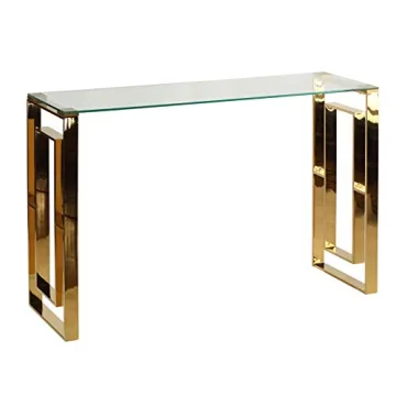 Show moreIntroducing the Cortesi Home Laila Console Table, a perfect blend of sleek contemporary style and functionality. Crafted from premium materials including a robust steel frame, durable tempered glass, and eye-catching metal accents, this console table is designed to elevate your interior decor. The clear tempered glass, measuring 10mm thick, not only enhances the aesthetic appeal of your living space but also provides exceptional strength and durability, making it a lasting addition to your home. The elegant gold steel frame features a contemporary high gloss finish that reflects light beautifully, adding a touch of sophistication to any room.