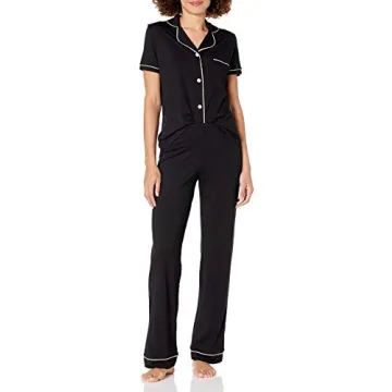 Experience the ultimate in sleep comfort with the Cosabella Women's Bella Short Sleeve Top & Pants Pajama Set. Crafted from a luxurious blend of Pima cotton and Modal, this pajama set offers a remarkably soft touch against the skin, ensuring a restful night's sleep. The set features a fitted short-sleeve button-down shirt adorned with elegant flat satin piping in tonal shades, adding a touch of sophistication to your bedtime wardrobe. With its classic chest...