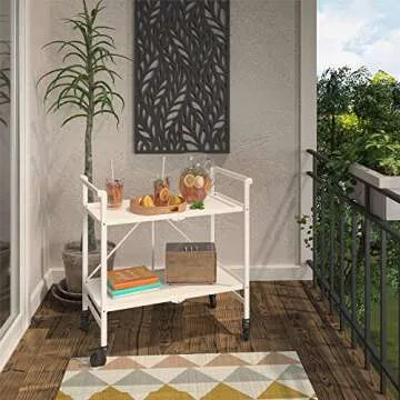 Show moreIntroducing the COSCO Outdoor Living™ Folding Serving Cart – the perfect blend of versatility and style for your home. This innovative cart is designed for both indoor and light outdoor use, making it an ideal companion for entertaining guests, whether it’s a cozy dinner on your patio or special gatherings at home. Constructed with a sturdy metal frame, this serving cart boasts two spacious shelves that offer ample room for snacks, drinks, and décor, ensuring you can serve with elegance and ease. The chic white finish not only adds a modern touch to any setting but also enhances its upscale appearance, making it a great addition to your everyday life or a standout feature at special events.