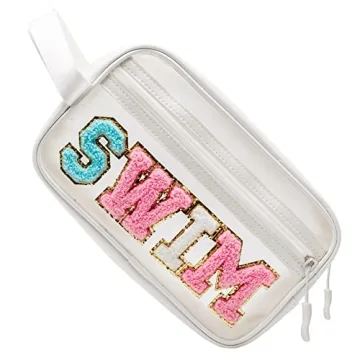 Show moreIntroducing the COSHAYSOO Clear SWIM Makeup Bag – the ultimate blend of style and functionality for swimmers and beach enthusiasts alike! This stunning transparent cosmetic pouch is crafted from premium PU leather and PVC fabric, ensuring it is both waterproof and easily washable. Whether you are looking to organize your makeup, skincare products, or swim gear, this bag is designed to keep your essentials safe and accessible. With its adorable preppy patch design, featuring vibrant chenille letters that proudly spell out 'SWIM,' this chic bag adds a playful yet sophisticated touch to your swim accessories collection.