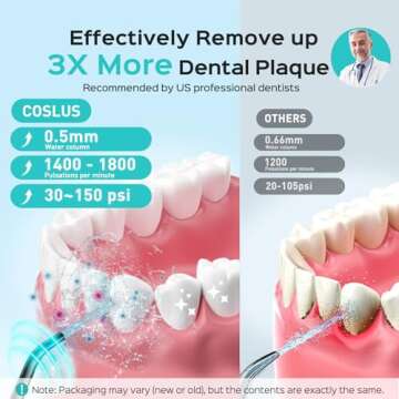 COSLUS Water Dental Flosser Pick for Teeth: 4 Modes Cordless Portable 300ML Larger Tank Water Teeth Cleaner IPX7 Waterproof Flossing Cleaning Picks for Home Travel FC5360