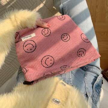 Cute Corduroy Cosmetic Bag with Smile Dots - Makeup Organizer for Women