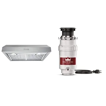 Additionally, coupled with the Waste King disposer featuring a robust 1/2 HP permanent magnet motor that operates at 2600 RPM, every kitchen task becomes more manageable. Known for its reliability, the Waste King disposer minimizes jamming issues and includes a convenient dishwasher hookup. This combination of the COSMO range hood and Waste King disposer not only enhances your kitchen's performance but also ensures that your cooking environment remains pristine and enjoyable.
