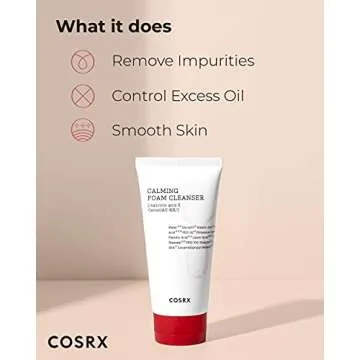 Show moreIntroducing the COSRX AC Collection Calming Foam Cleanser, a game-changing skincare solution designed specifically for acne-prone skin. This powerful yet gentle foam cleanser features Salicylic Acid as its star ingredient, known for its ability to effectively combat acne while reducing redness and inflammation. With a generous concentration of 5000ppm of Salicylic Acid, it penetrates deep into the pores to remove dirt, excess oil, and impurities, making it an essential addition to your daily skincare regimen. The luxurious foam wraps around your skin, cleansing it without leaving a stripped feeling, thanks to its innovative formula that includes Centella Asiatica. This plant extract not only speeds up the healing process but also calms irritation, ensuring your skin feels refreshed and revitalized after every wash. Whether you're dealing with occasional breakouts or stubborn blackheads and whiteheads, this cleanser is the answer you've been looking for.