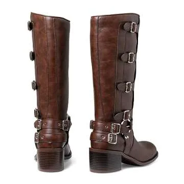 Cossansan Riding Boots for Women Wide Calf- Knee High Boots Women Block Chunky Heel Pull On Comfortable Dress Cowgirl Boots Ladies Shoes Size9