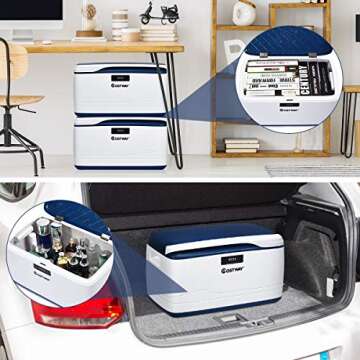 Show moreIntroducing the COSTWAY Large Locking Storage Container Box—the ultimate solution for all your storage needs. With its generous 8-gallon capacity, this storage organizer is perfect for safely housing everything from important office files to toys and jewelry at home. Designed not only to maximize space but also to enhance your living environment, this storage bin ensures your belongings are neatly tucked away, creating a comfortable and tidy atmosphere.