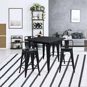 Show more Introducing the COSTWAY Metal Bar Stools Set of 4, where durability meets style! Crafted with a sturdy high-grade metal base, these chairs not only support up to 330lbs but also promise long-lasting durability for all your indoor gatherings. Designed with a cross brace under each seat, enjoy unparalleled stability and support while dining with family or friends. Transform your dining experience with chairs that combine functionality with an elegant aesthetic, presenting a modern industrial charm with a luxurious gun-colored finish.