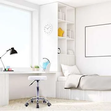 Costway Rolling Stool Ergonomic Swivel Adjustable Hydraulic Drafting Salon Massage Spa Stool with Comfortable Larger Cushioned Seat, Chrome Metal Base (White)