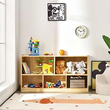 Costzon 2-Shelf Bookcase for Kids, Wooden Toy Storage Organizer for Books Toys, 5-Section Freestanding Classroom Daycare Shelf for Home Playroom, Hallway & Kindergarten (Burlywood)