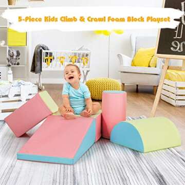 Costzon Crawl and Climb Foam Play Set, Colorful Fun Foam Play Set, 5 Piece Lightweight Interactive Set, Children’s Software Composite Toy for Toddlers, Preschoolers, Baby and Kids (Deep Powder)