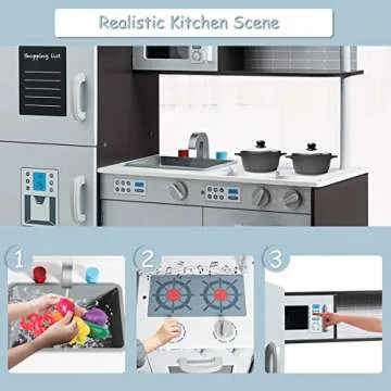 Costzon Kids Kitchen Playset, Wooden Pretend Play Toy Set with Realistic Sound, Microwave, Oven, Washing Machine, Refrigerator, Sink, Play Kitchen for Toddlers, Gift for Boys Girls Age 3+