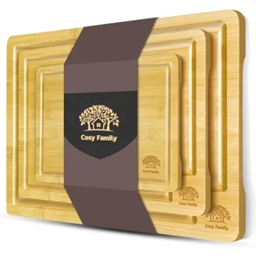 Cosy Family Wood Cutting Boards for Kitchen - Set of 3 - Bamboo Cutting Boards with Juice Groove, Serving Board Set, Thick Chopping Board for Meat, Veggies, Easy to clean
