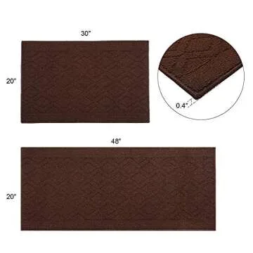 Show moreTransform your kitchen into a vibrant and functional space with the COSY HOMEER Kitchen Rug Mats. Whether you're whipping up a feast or cleaning up, these beautifully designed mats are crafted from 100% high-quality polypropylene, ensuring durability and longevity. Measuring 48x20 inches and 30x20 inches, they offer just the right amount of coverage and comfort while standing. These mats are lightweight yet heavy-duty, and will not break down over time, keeping your kitchen looking stylish and feeling comfortable. Their elegant brown color complements any kitchen decor while also providing anti-slip features for safety in busy areas.