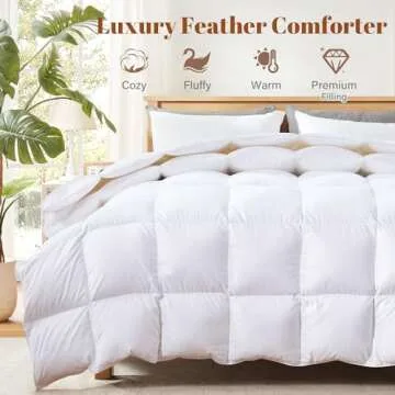 Cosybay Queen Size Feather Down Fiber Comforter - Ultra Fluffy Duvet Insert with Soft Cotton Cover, All Season Hotel Luxury Bedding with Corner Tabs, 90"x90" White