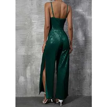 Step into elegance and comfort with the Cosygal Women's Deep V-Neck Sleeveless Adjustable Spaghetti Strap Side Slit Wide Leg Pants Sequin Jumpsuit. This stunning outfit is crafted from a premium blend of 95% polyester and 5% elastane, ensuring a flattering fit that accentuates your silhouette while offering the right amount of stretch for all-day wear. Designed with a deep V-neck and a high waist, this jumpsuit effortlessly highlights your figure, offering a chic yet casual look that is versatile...