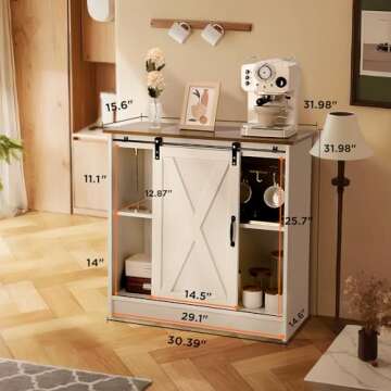 Show moreIntroducing the COSYSUPER White Coffee Bar Cabinet, an exquisite blend of farmhouse charm and modern aesthetics designed to elevate your living space. This beautifully crafted coffee bar cabinet features a striking white finish that seamlessly fits into any decor style while providing ample storage for all your coffee essentials. Whether you’re brewing a cozy morning cup or entertaining guests with afternoon lattes, this cabinet offers both style and functionality. With its innovative sliding barn door design, you’ll find it not only practical but also a delightful addition to your kitchen, dining room, or living room.